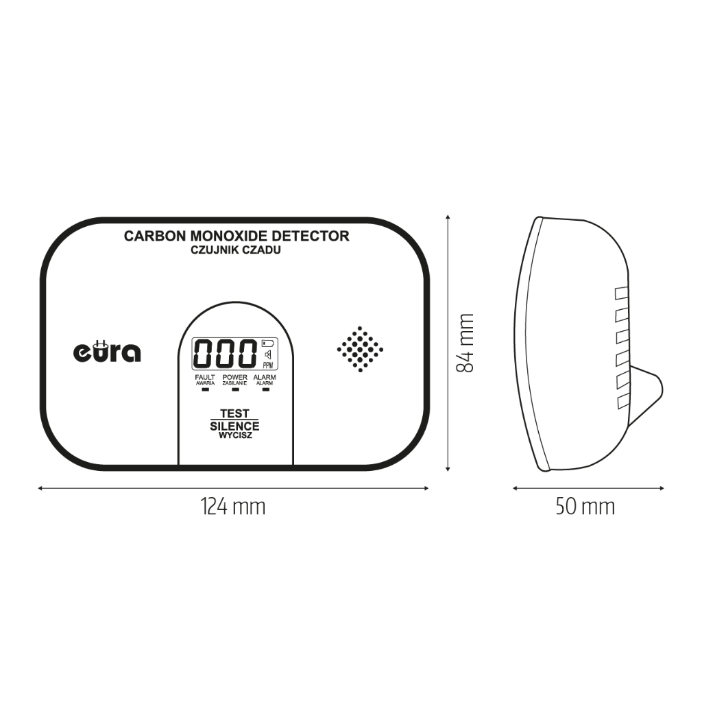 Laisvai pastatomas anglies monoksido detektorius Eura CD-45A2 v.2 su įmontuotu termometru skirtas nuolat stebėti anglies monoksido kiekį ore, aptikti ir įspėti, kai viršijama saugi šių dujų koncentracija.