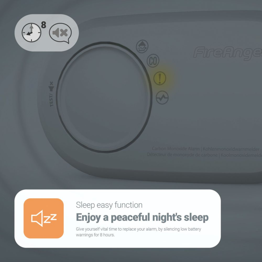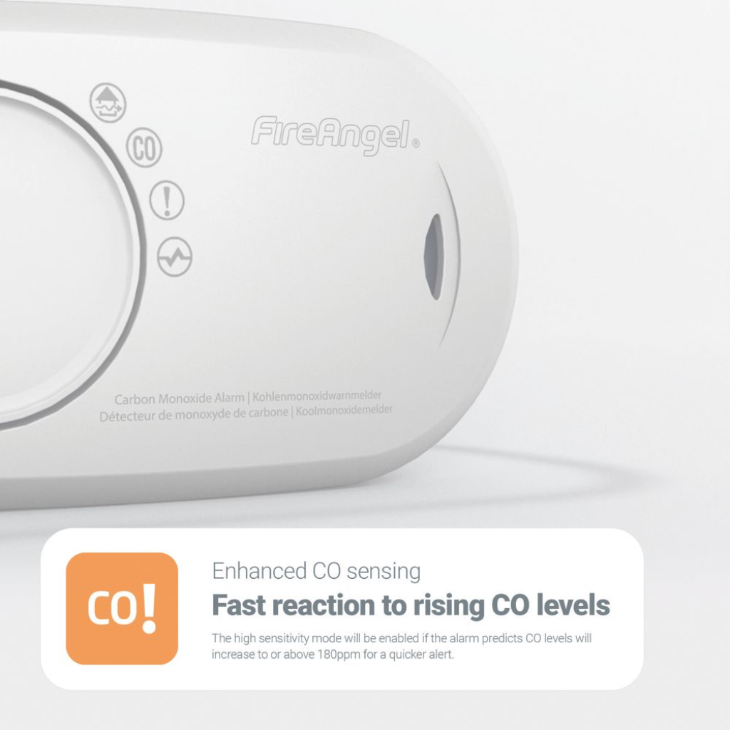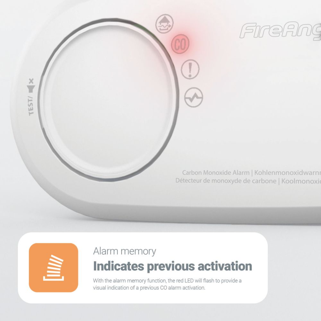 FireAngel FA3820 anglies monoksido detektorius turi LED būsenos indikatorius, maitinamas 10 metų tarnaujančia uždara ličio baterija ir yra sertifikuotas naudoti namuose ar kelionėse. Skirtingai nuo kitų CO detektorių, FA3820 turi išankstinio perspėjimo funkciją, kuri skatina vėdinti patalpas, kai aptinkamas nedidelis anglies monoksido kiekis. Kombinuotas bandymo/tylos mygtukas leidžia kas savaitę atlikti tylų bandymą, o „Sleep Easy“ funkcija vienu mygtuko paspaudimu gali nutildyti žemo baterijos įkrovos/gyvavimo pabaigos įspėjamuosius signalus iki 8 valandų.