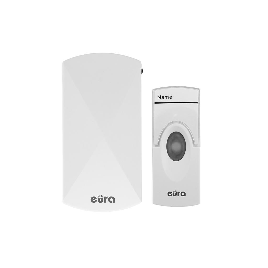 Bevielis durų skambutis Eura WDP-05A3 baltas 230V / 50 Hz susideda iš imtuvo ir siųstuvo, signalo nešiklio dažnis: 433,92 MHz, 16 melodijų, iš kurių galima rinktis, garsumo reguliatorius, diapazonas: 50 metrų, imtuvo maitinimo ~ 230V (kiškite tiesiai į elektros lizdą) ir mygtuko ( CR2032 tipo ličio baterija). Speciali intelektuali kodavimo sistema (mygtukas imtuvo viduje) leidžia išplėsti komplektaciją (su 1 imtuvu gali dirbti iki 4 siųstuvų, su 1 siųstuvu gali dirbti neribotas imtuvų skaičius).