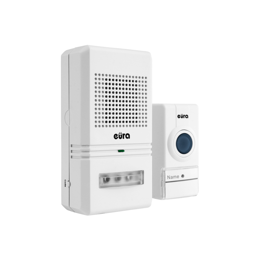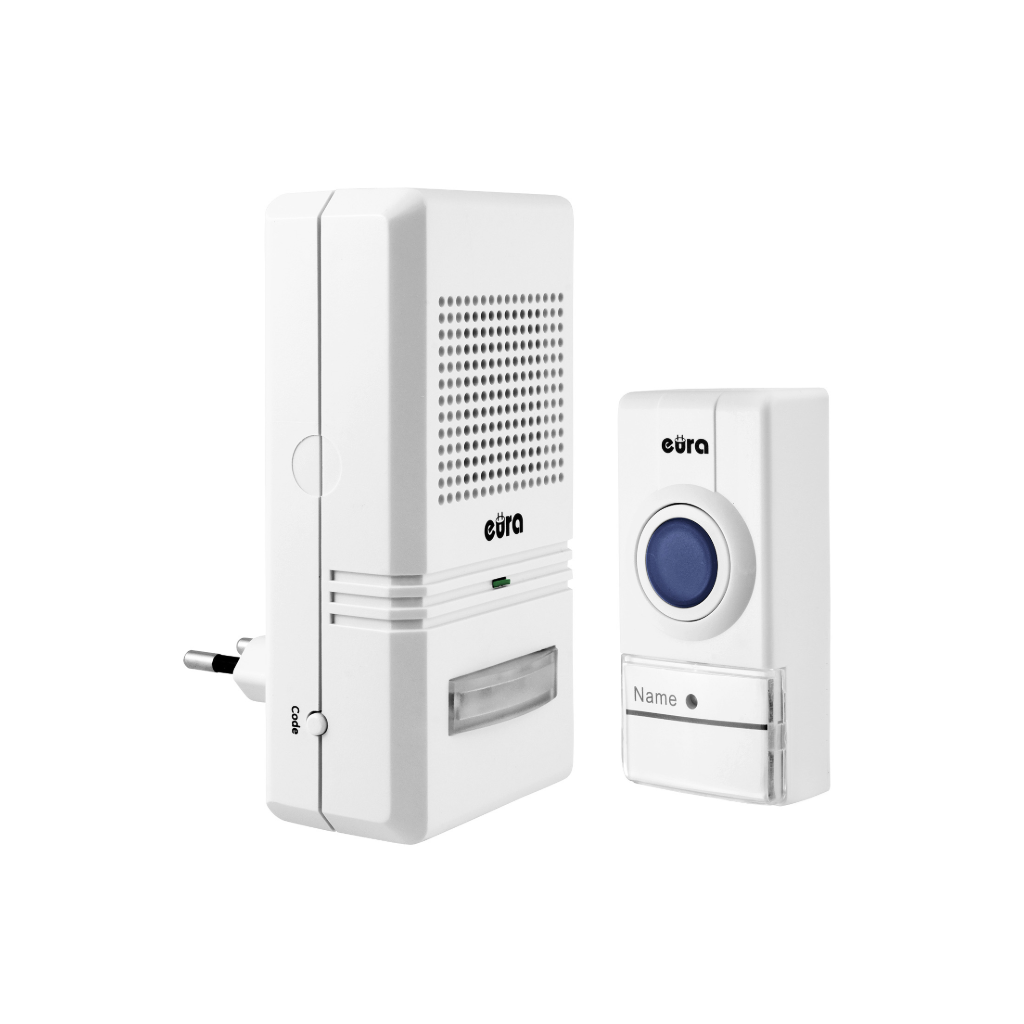 Bevielis durų skambutis Eura WDP-15A3 Simplex susideda iš imtuvo ir siųstuvo, signalo nešiklio dažnis: 433,92 MHz, 16 melodijų, iš kurių galima rinktis, garsumo reguliatorius, diapazonas: 50 metrų, imtuvo maitinimo ~ 230V (kiškite tiesiai į elektros lizdą) ir mygtuko ( CR2032 tipo ličio baterija). Speciali intelektuali kodavimo sistema (mygtukas imtuvo viduje) leidžia išplėsti komplektaciją (su 1 imtuvu gali dirbti iki 4 siųstuvų, su 1 siųstuvu gali dirbti neribotas imtuvų skaičius).