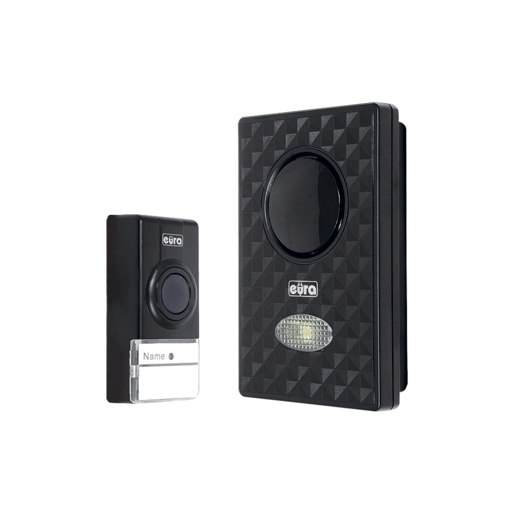 Bevielis durų skambutis Eura WDP-40A3 Lumen – tai modernus ir funkcionalus sprendimas, skirtas namams, biurams ar kitoms patalpoms. Įrenginys ne tik informuoja apie atvykusius lankytojus garsiniu signalu, bet ir turi papildomas funkcijas – šviesos indikaciją bei vibraciją, todėl puikiai tinka ir žmonėms su klausos sutrikimais arba triukšmingoje aplinkoje.