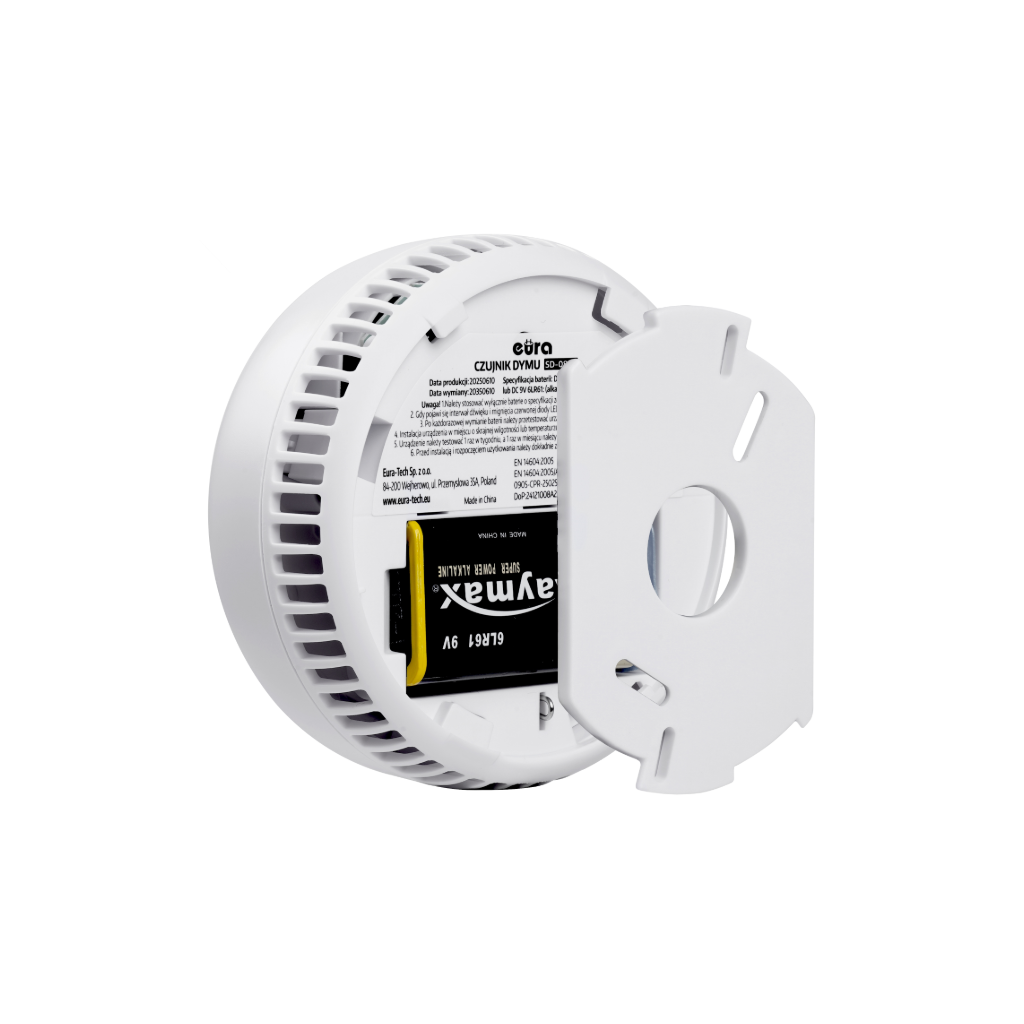 Dūmų detektorius Eura SD-08A2 skirtas stebėti uždaras patalpas dėl dūmų ir įspėti apie gaisro pavojų. Dūmų detektorius Eura SD-08A2 turi aukštos kokybės fotooptinį jutiklį. Montuojamas ant patalpų lubų. Jei aptinkamas pavojus (dūmai), jutiklis iš karto suaktyvina: