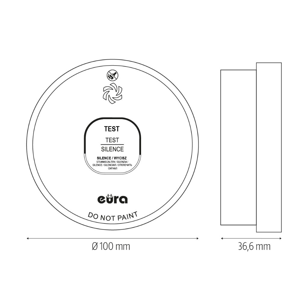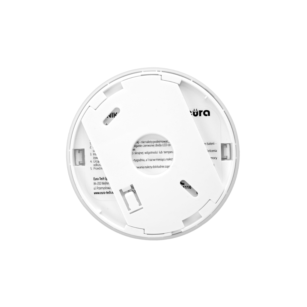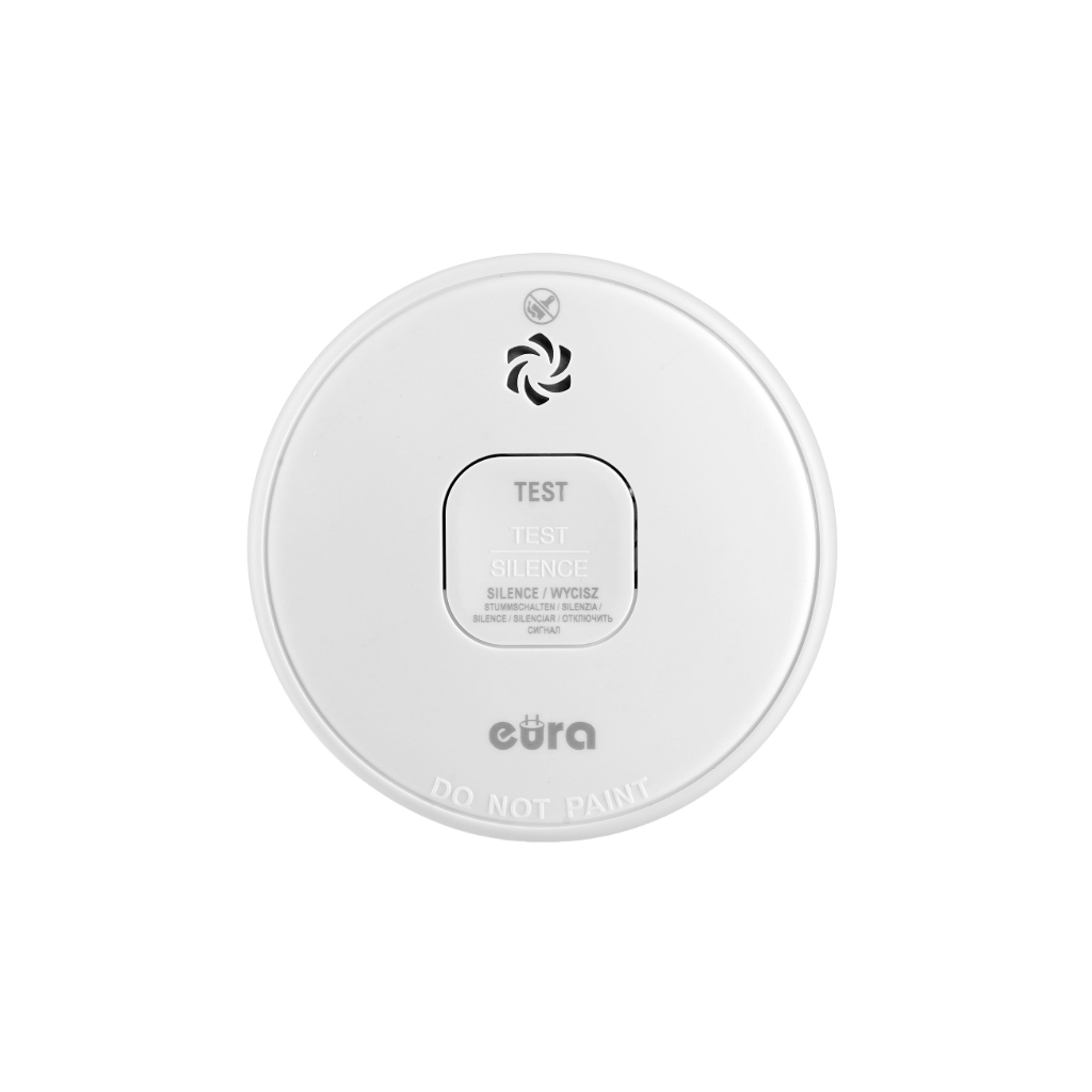 Dūmų detektorius Eura turi bandymo mygtuką, skirtą patikrinti, ar jis veikia tinkamai. Jutiklis taip pat turi įmontuotą bateriją, kurios tarnavimo laikas yra 10 metų.