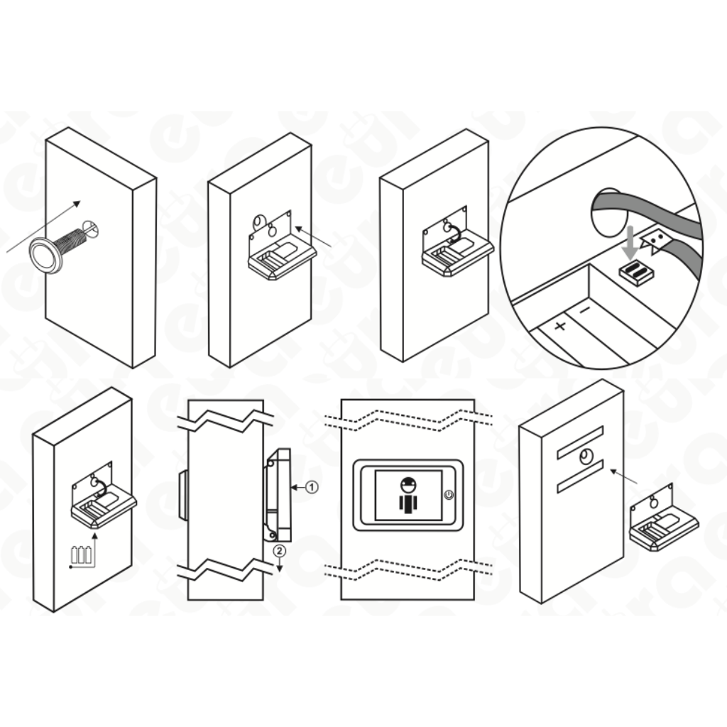 Durų akutės montavimas yra labai paprastas ir nereikalauja jokių specialių įrankių. Be to, įrenginio montavimas nepažeidžia durų konstrukcijos.