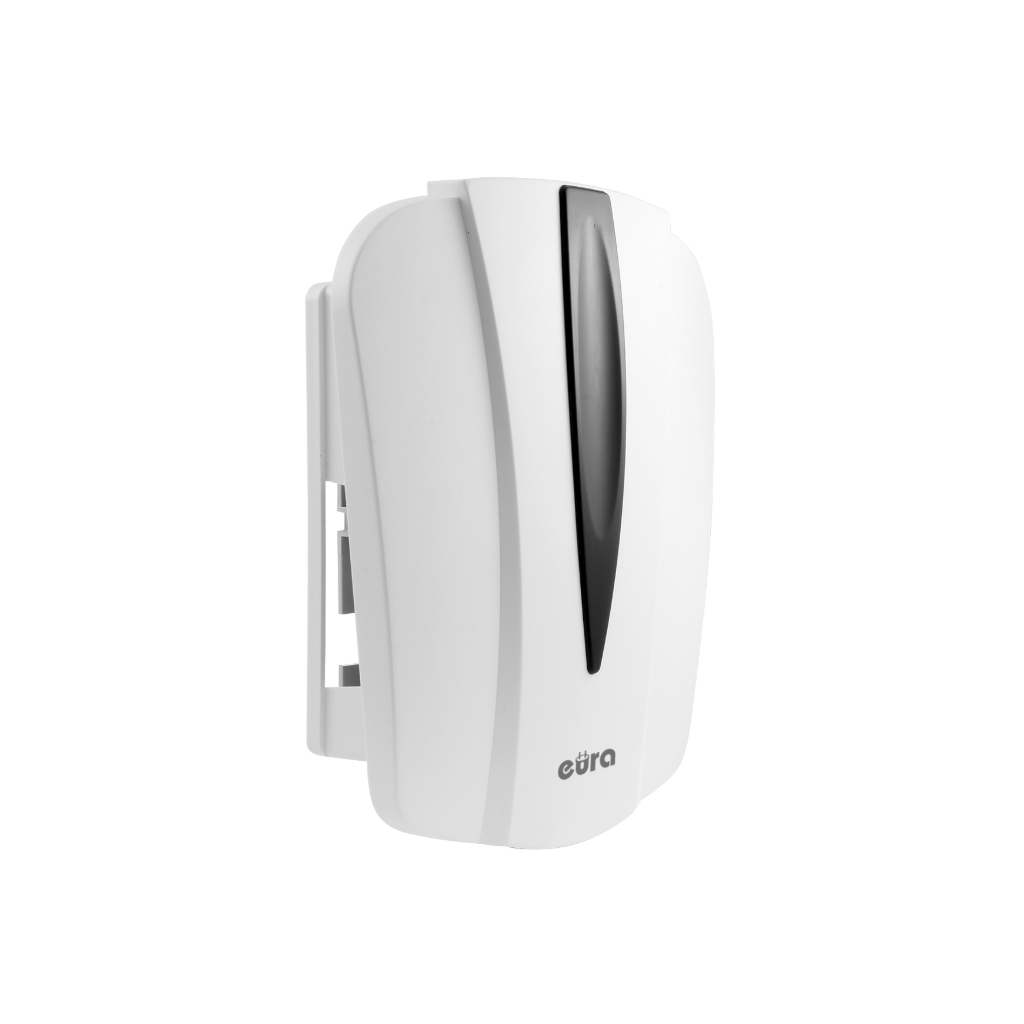 Dviejų garsų durų skambutis Eura DB-20G7 maitinamas iš elektros tinklo (230 V AC), todėl nereikia rūpintis baterijų keitimu. Dėl nesudėtingo montavimo ir modernaus baltos bei juodos spalvų dizaino šis modelis puikiai dera įvairiose vidaus patalpose.