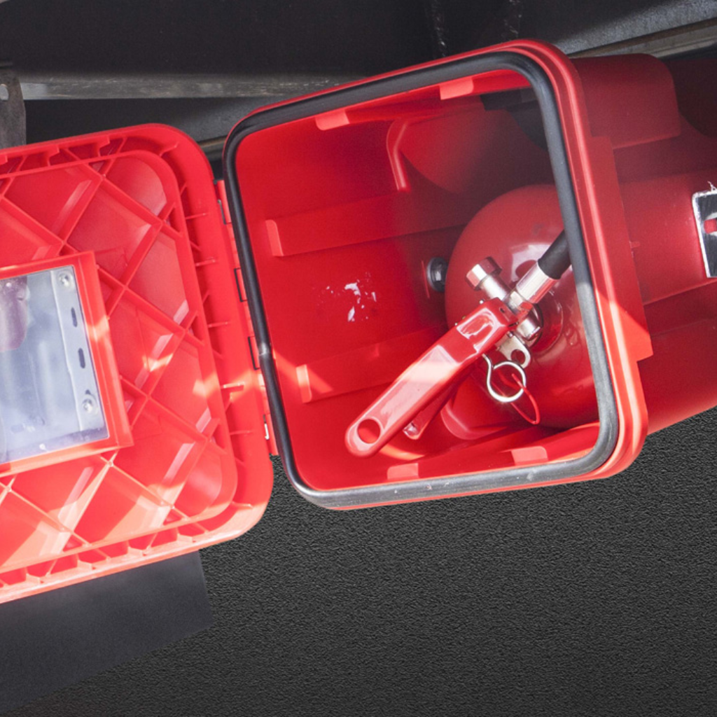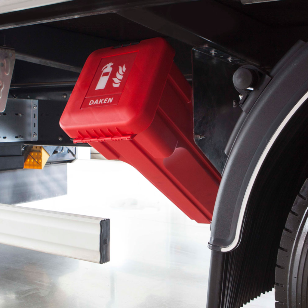 DAKEN Sliden serijos gesintuvų dėžės pasižymi funkcionaliu, moderniu dizainu ir yra orientuotos į profesionalų naudojimą. Sandari konstrukcija patikimai apsaugo gesintuvą nuo dulkių, vandens, purvo ir kitų neigiamų aplinkos veiksnių, su kuriais dažnai susiduriama transporto ir logistikos srityje.