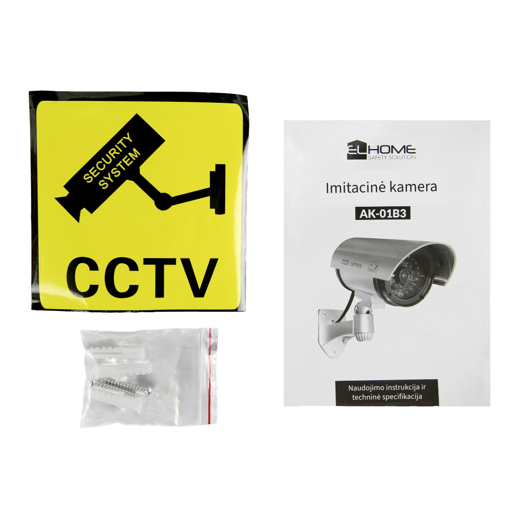 Imitacinė kamera El home AK-03B3 sukurta efektyviai atgrasyti nuo vagių ir vandalų nepatiriant didelių išlaidų, susijusių su tikros stebėjimo kameros įrengimu. Įrengus ją matomoje sklypo vietoje, net ir patį įmantriausią įsibrovėlį atgrasys manymas, kad teritoriją saugo moderni ir profesionali stebėjimo sistema. Tiesą sakant, imitacinė kamera El home AK-03B3 yra tikros CCTV stebėjimo kameros korpusas, papildomai įrengtas mirksintis LED diodas, leidžiantis įrenginiui skirti ypatingą dėmesį, ypač sutemus. Prietaisas tinka montuoti tiek viduje, tiek lauke. Geriausias sprendimas bus kameros montavimas ant sienos ar pastato kampo. Montavimas yra paprastas ir greitas, naudojant komplekte esančius tvirtinimo varžtus.