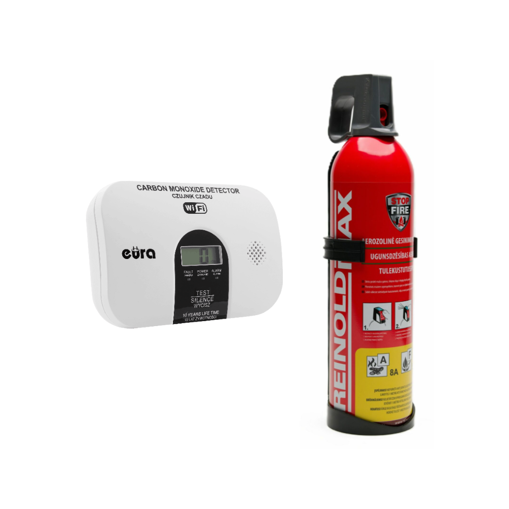 Išmanaus anglies monoksido detektoriaus ir gesintuvo rinkinys EUR-15 – tai sprendimas, padedantis laiku pastebėti smalkių keliamą pavojų ir būti pasiruošus jam dar prieš jam atsirandant.