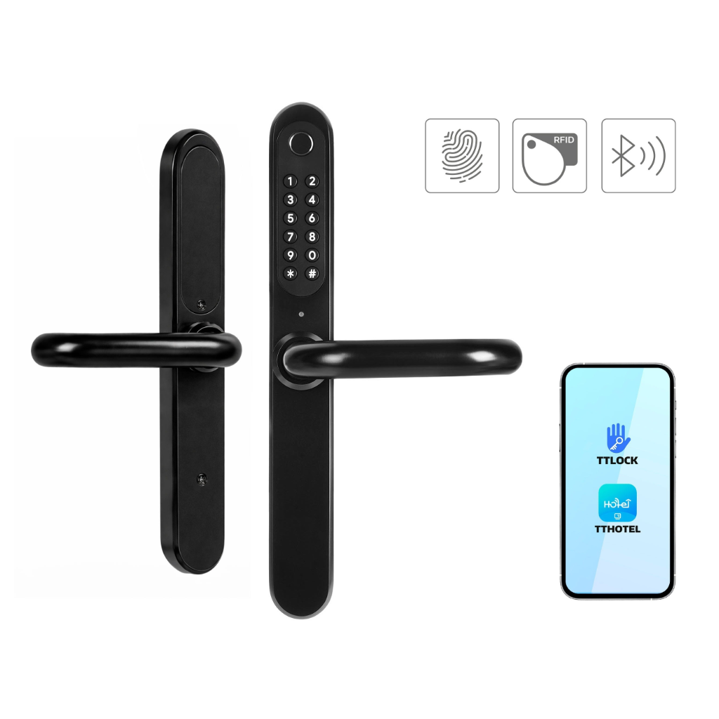 Išmanioji durų rankena Eura ELH-30H4 Black – elektroninė durų rankena su prieigos kontrole skirta naudoti viešbučiuose ir nuomojamuose butuose. Išmanioji durų rankena Eura ELH-30H4 Black, kurios programinė įranga vienu metu palaiko dvi operacines sistemas – TTLock ir TTHotel.
