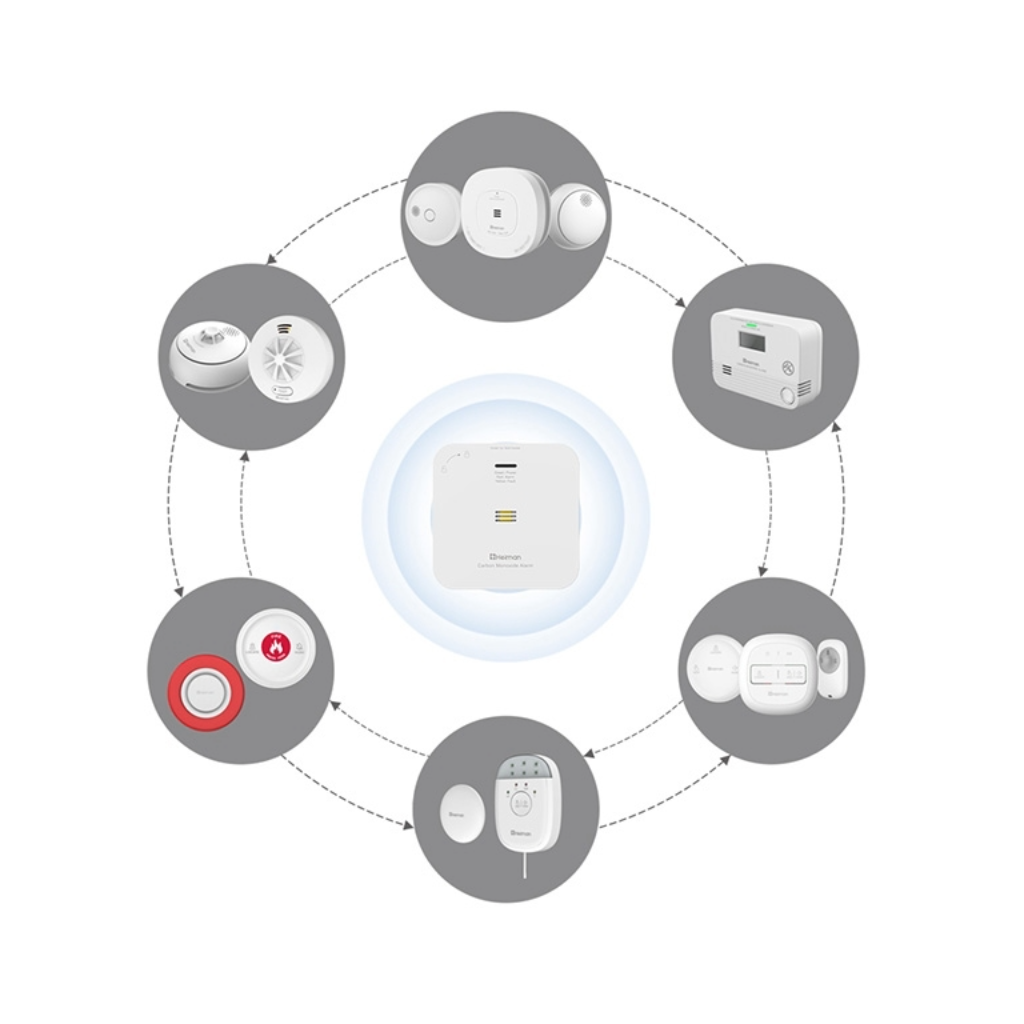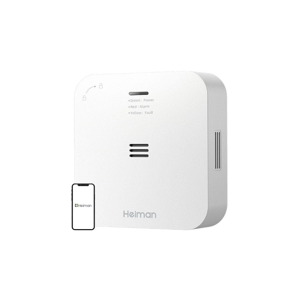 Išmanus sujungiamas anglies monoksido detektorius Heiman HM-720ES yra išmanus anglies monoksido smalkių detektorius su bevielio sujungimo funkcija, skirtas patikimai apsaugai namuose, viešbučiuose, restoranuose ar pramoniniuose objektuose. Detektorius realiuoju laiku aptinka pavojingą anglies monoksido koncentraciją ore ir kilus grėsmei aktyvuoja 85 dB garsinį signalą bei perduoda pavojaus pranešimą kitiems sujungtiems įrenginiams.