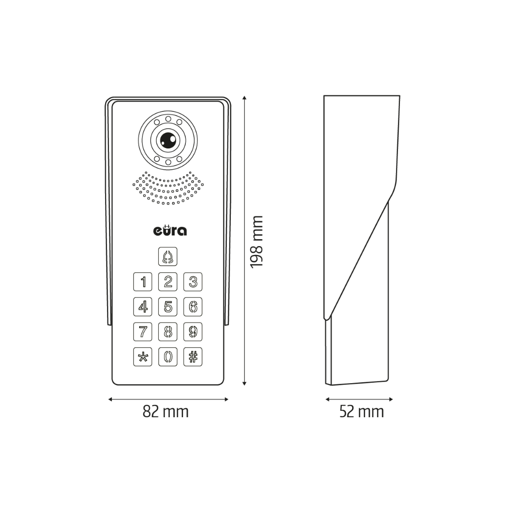 Išorinė domofono kasetė Eura VDA-81A3 – lauko kasetė skirta visiems vaizdo domofonams, veikiantiems su „Eura Connect“ sistema. Vienvietėje lauko kasetėje „Eura VDA-81A3“ įrengti 5 balti šviesos diodai ir sutemų jutiklis, skirtas diskretiškam naktiniam stebėjimui. Kasetėje įrengta vaizdą įrašanti kamera 700 TVL raiška su 53o matymo lauko objektyvu. Įeiti į patalpas galima įvedus tinkamą kodą, naudojant apšviestus klaviatūros klavišus. Išorinė domofono kasetė Eura VDA-81A3 pagaminta iš aliuminio lydinio, kuris kartu su apsauginiu gaubtu užtikrina jos atsparumą nepalankioms oro sąlygoms. Domofono kasetė Eura skirta montuoti ant paviršiaus.