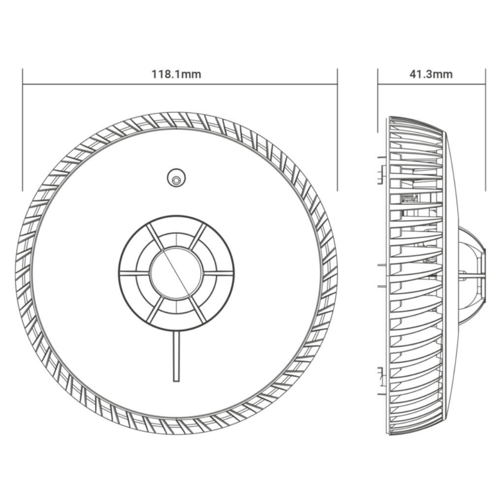 - Matmenys 118,1 mm (skersmuo) x 41,3 mm (gylis)