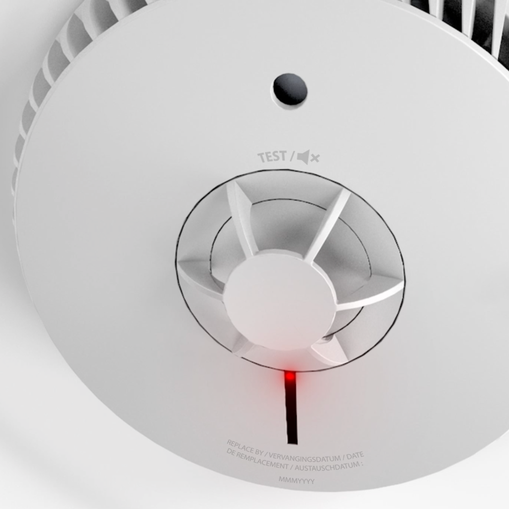 - Veikimo lemputė (raudona) – mirksi maždaug kas 40 sekundžių, patvirtindama, kad signalizatorius maitinamas