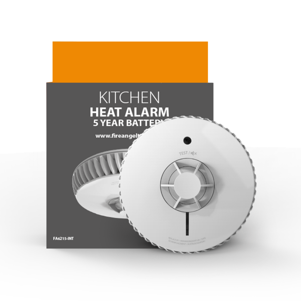 Karščio detektorius FireAngel FA6215-INT su keičiama 5 metus veikiančia baterija, kuris akustiniu signalu įspėja, kai aplinkos temperatūra pakyla tarp 54 °C ir 65 °C, todėl jis skirtas aptikti pavojingą šilumos padidėjimą, kuriame dūmų detektoriai gali būti mažiau tinkami. Karščio detektorius FireAngel FA6215-INT turi didelį testavimo mygtuką, „Sleep Easy“ funkciją ir garsinį aliarmą iki 85 dB,