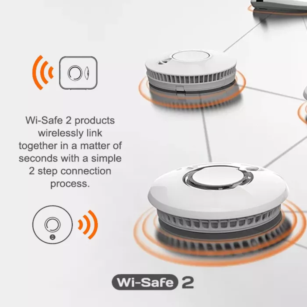 Prijungus visus kitus „Wi-Safe2“ detektorius, galima sukurti dūmų, šilumos ir anglies monoksido signalizacijos tinklą, užtikrinantį maksimalų saugumą. Kai vienas iš detektorių suveikia, suveikia ir visi kiti, esantys jo veikimo spindulio ribose. Tai užtikrina visišką jūsų namų apsaugą, visapusiškai apsaugant nuo šių pavojų.
