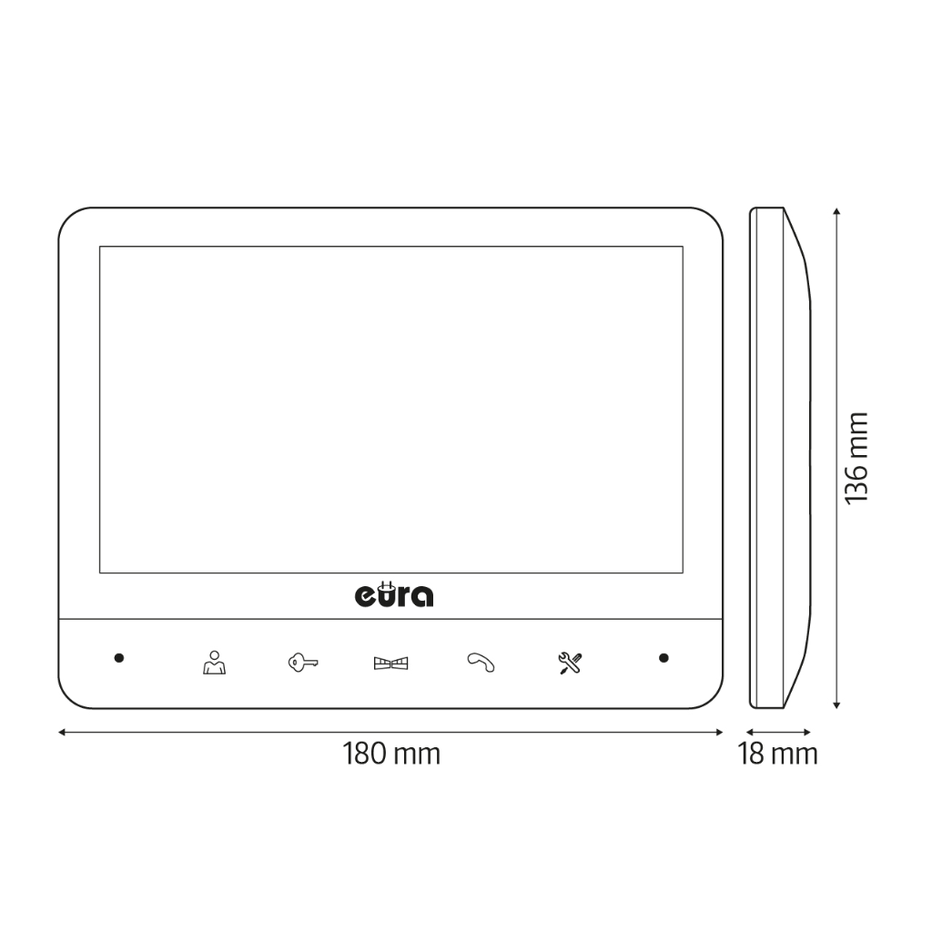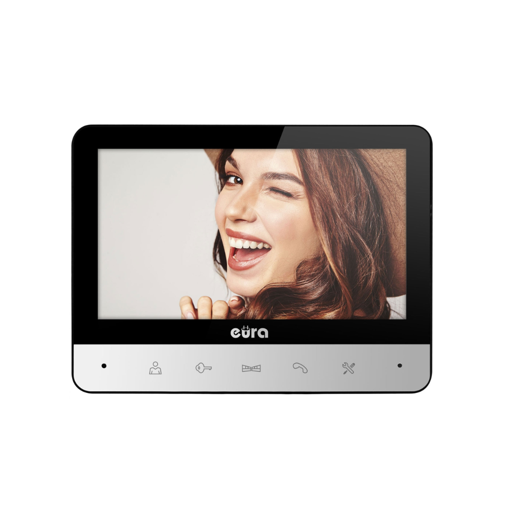 Monitorius Eura VDA-77A3 turi 7″ ekraną, kuris pasižymi aukštos kokybės ir aiškiu vaizdu. Įrenginyje įrengti reguliavimo ratukai, leidžiantys nustatyti pokalbio garsumą, vaizdo ryškumą bei spalvų sodrumą. Naudojant virš ratukų esantį mygtuką, galima pasirinkti vieną iš 16 skambučio melodijų, o slankikliu – reguliuoti jų garsumą.
