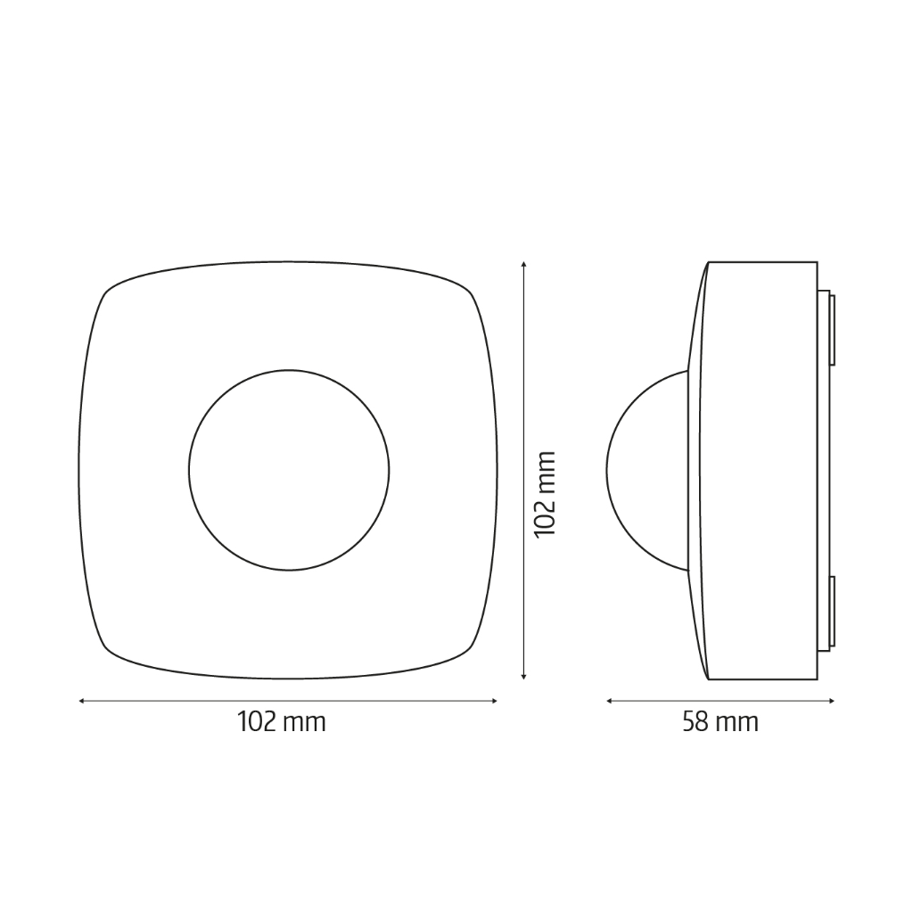 | Jutiklio matmenys (A x P x G) | 58 x 102 x 102 mm |