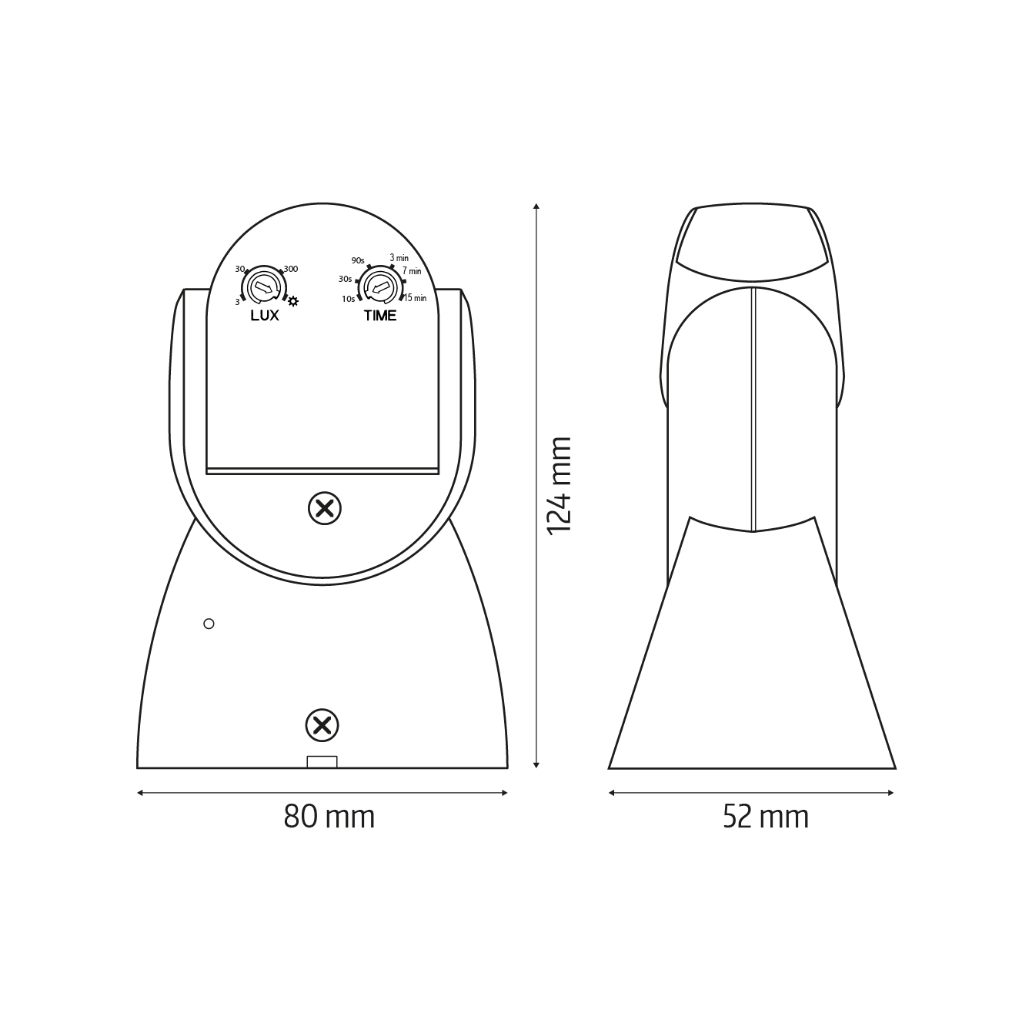 | Jutiklio matmenys (A x P x G) | 52 x 80 x 124 mm |