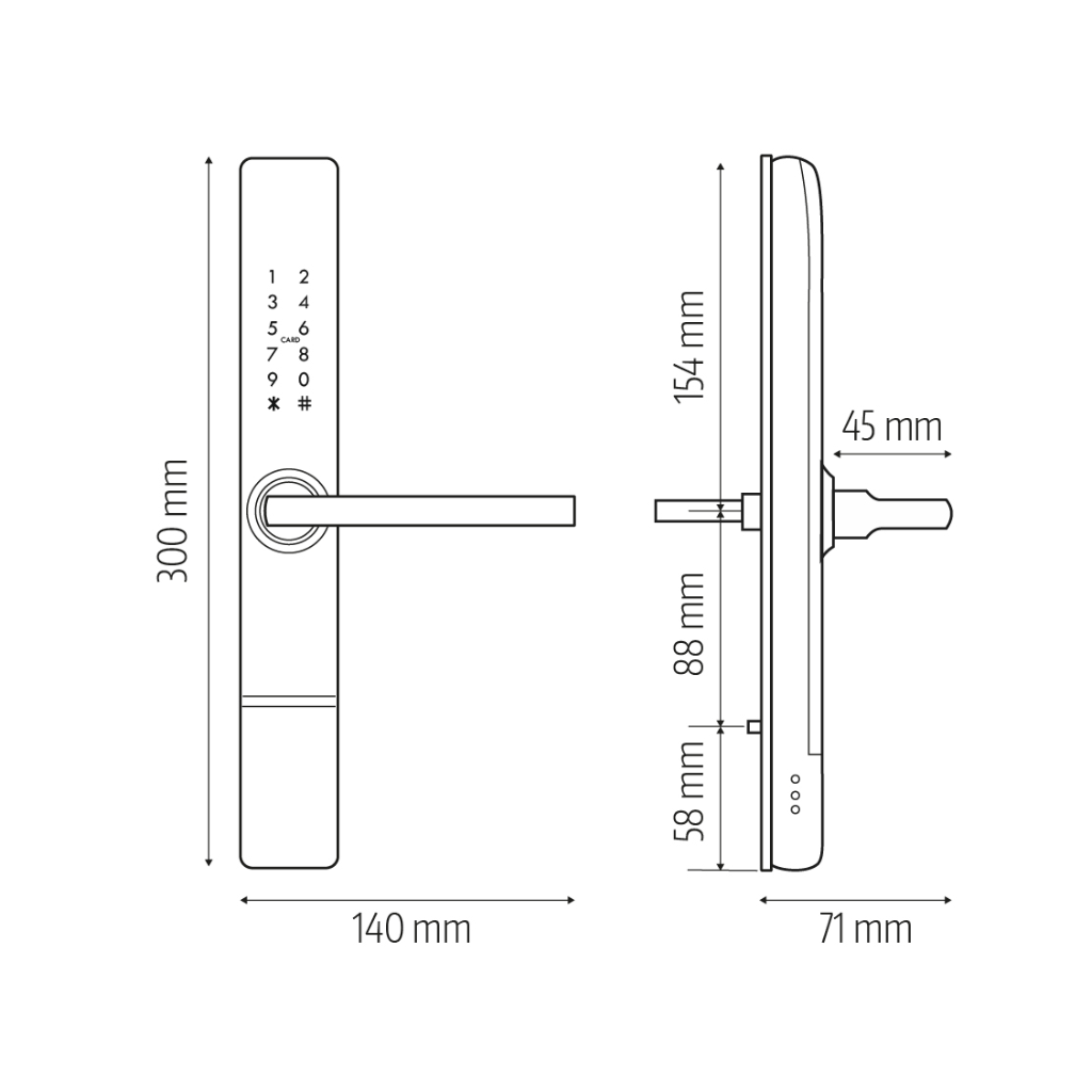 Be to, prietaise įrengtas belaidžio rakto skaitytuvas (Mifare 13,56 MHz) ir lietimui jautri skaitmeninė klaviatūra. Priartinus raktą prie skaitytuvo arba įvedus galiojantį PIN kodą, spyna atrakinama.